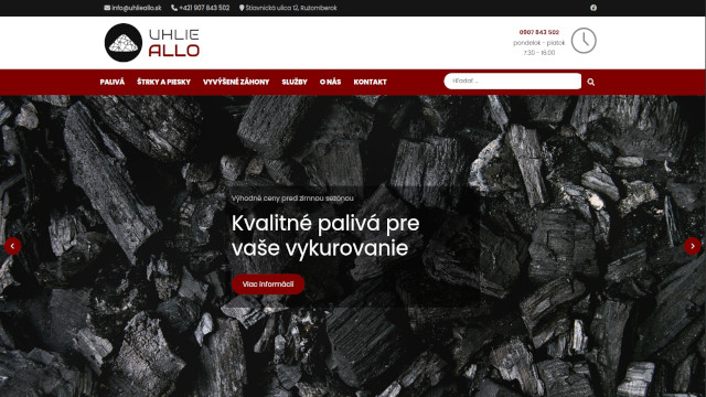 Prezentačná webová stránka spoločnosti Allo, ktorá zabezpečuje predaj uhlia, rôznych druhov palív, ale i výkopové a búracie práce v regióne Liptova.